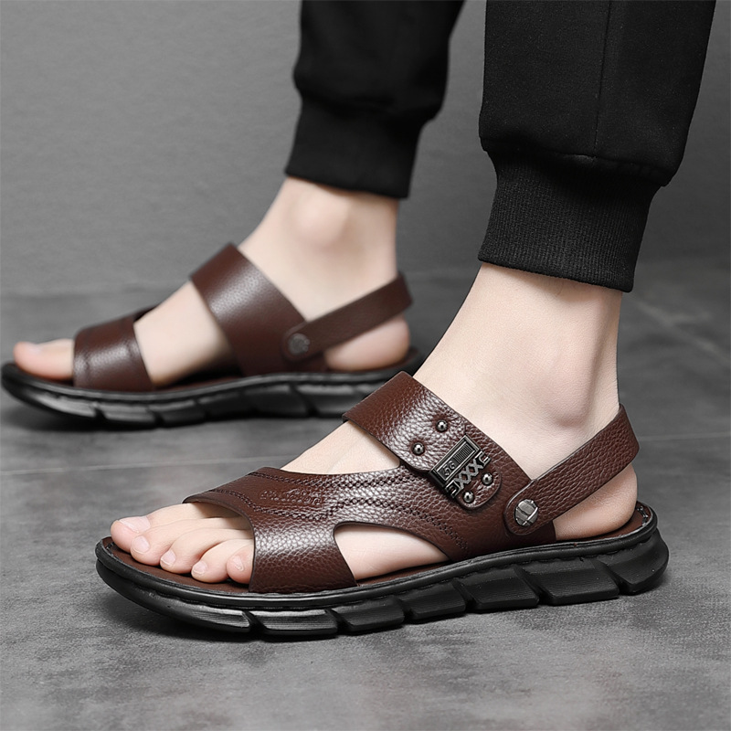 Men's sandals leather summer slippers 2023 new fashion trend first layer cowhide men's casual non-slip beach shoes